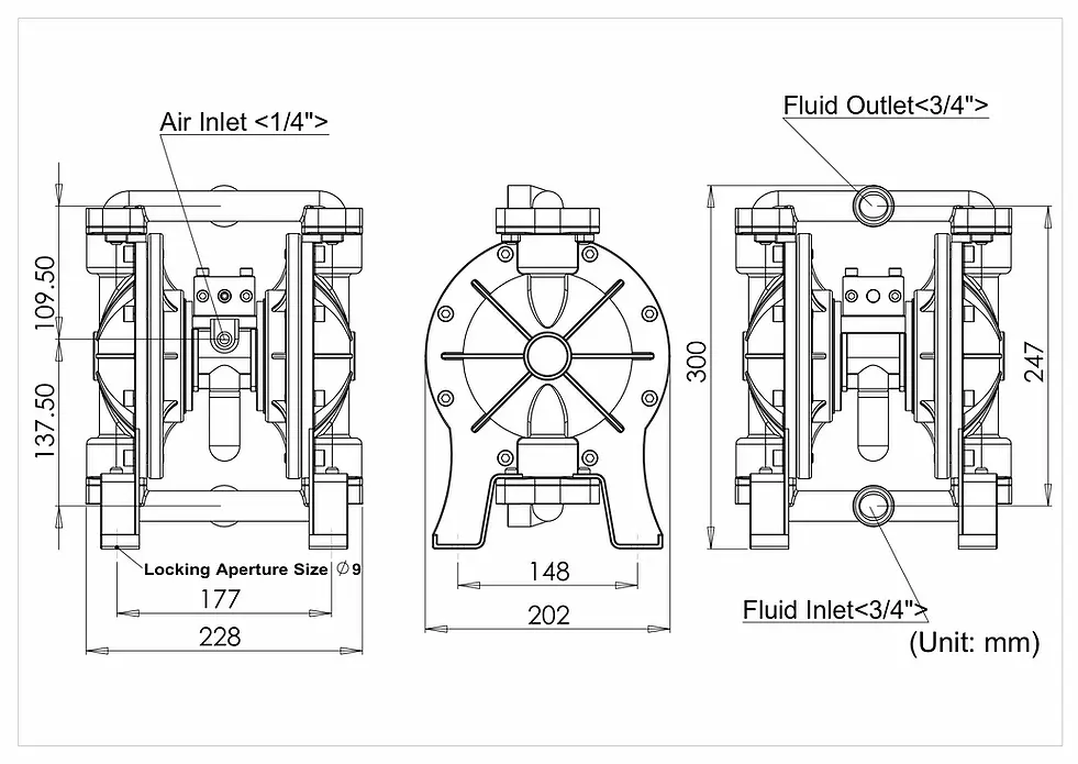 | 流體出入口口徑 | 3/4” PT(BSP) |